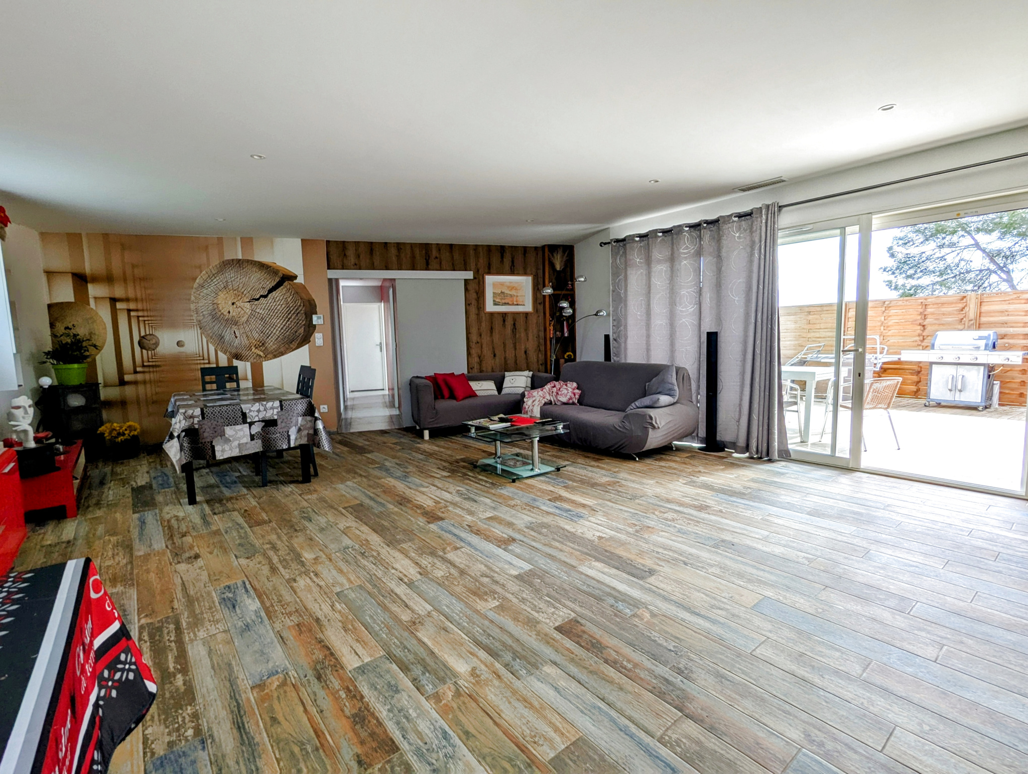 Une terrasse carrelée de 47 m² permet de profiter pleinement des beaux jours.